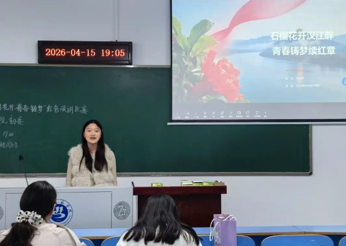 4月15日晚,文学院在崇文楼A708教室举办汉江师范学院第二届“石榴花开・青春铸梦(荆楚学子道中华青春托举中国梦)”演讲赛暨红色故事演讲比赛初赛。文学院学工办主任郑胜男、经济与管理学院张盼老师担任评委,四位选手同台竞技、抒发情怀。